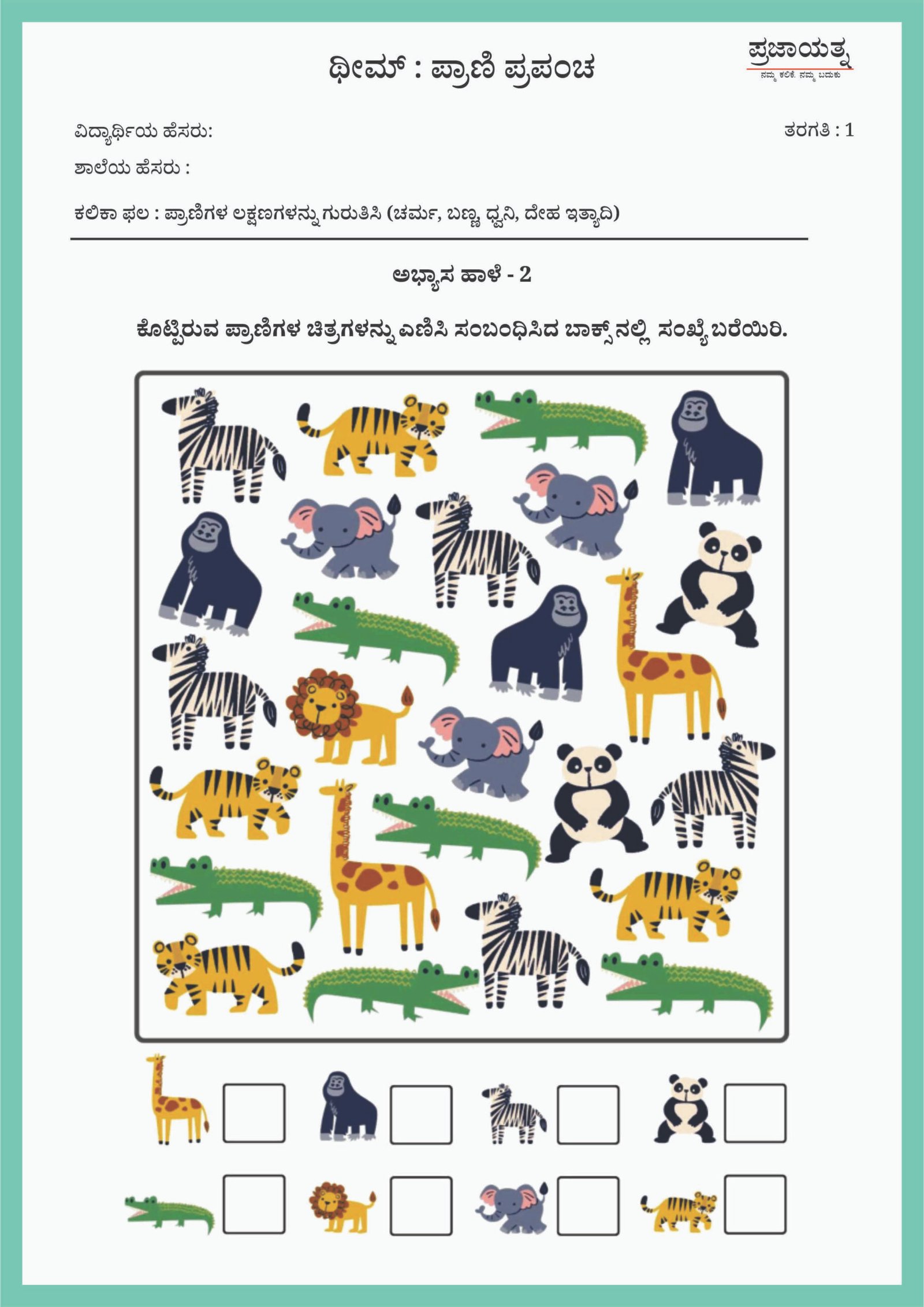 ಗ್ರೇಡ್ : 1 ಥೀಮ್ : ಪ್ರಾಣಿ ಪ್ರಪಂಚ